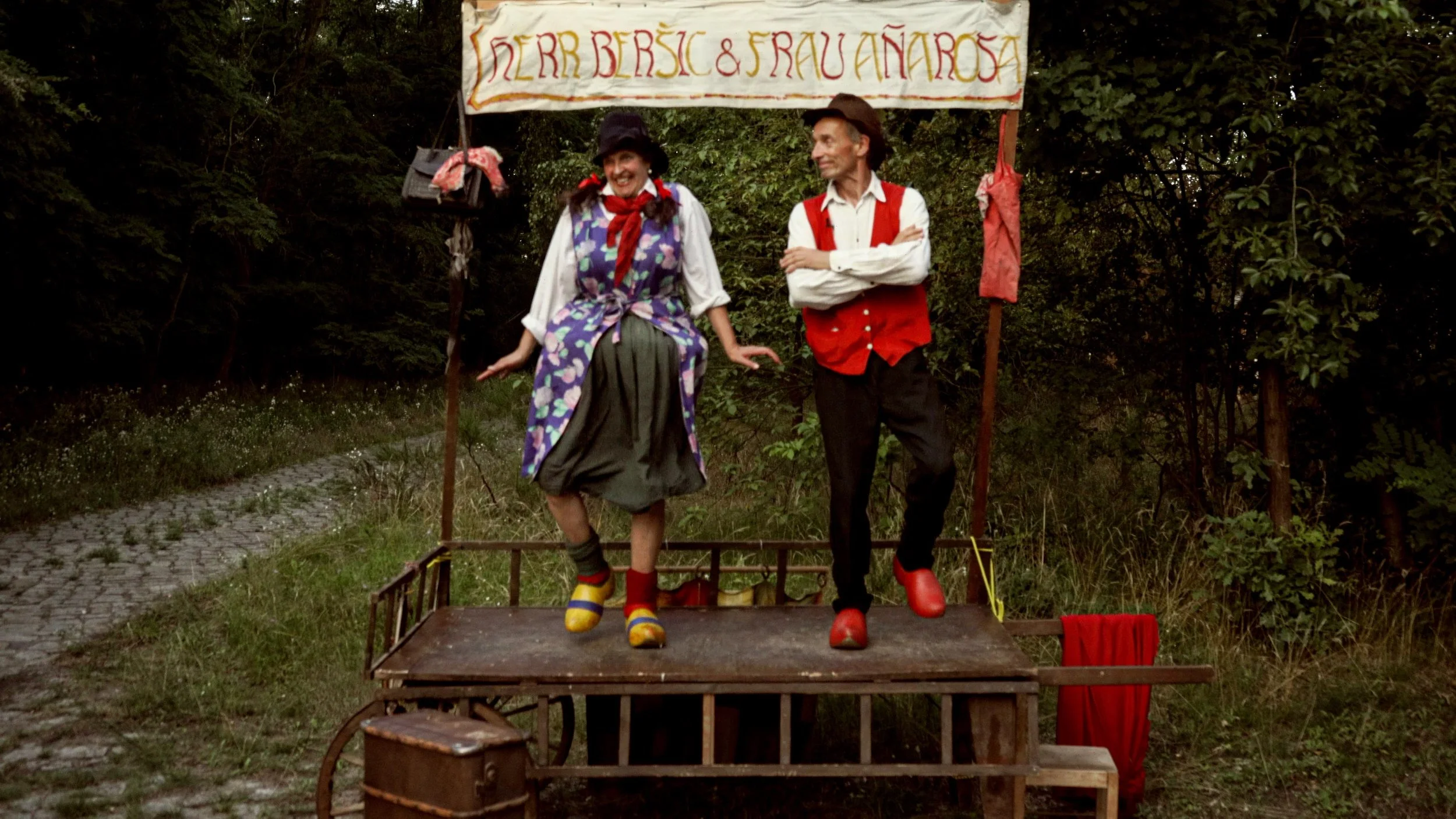 Auf einem Ochsenkarren kommen sie daher: Herr Bersic und Frau Annarosa.