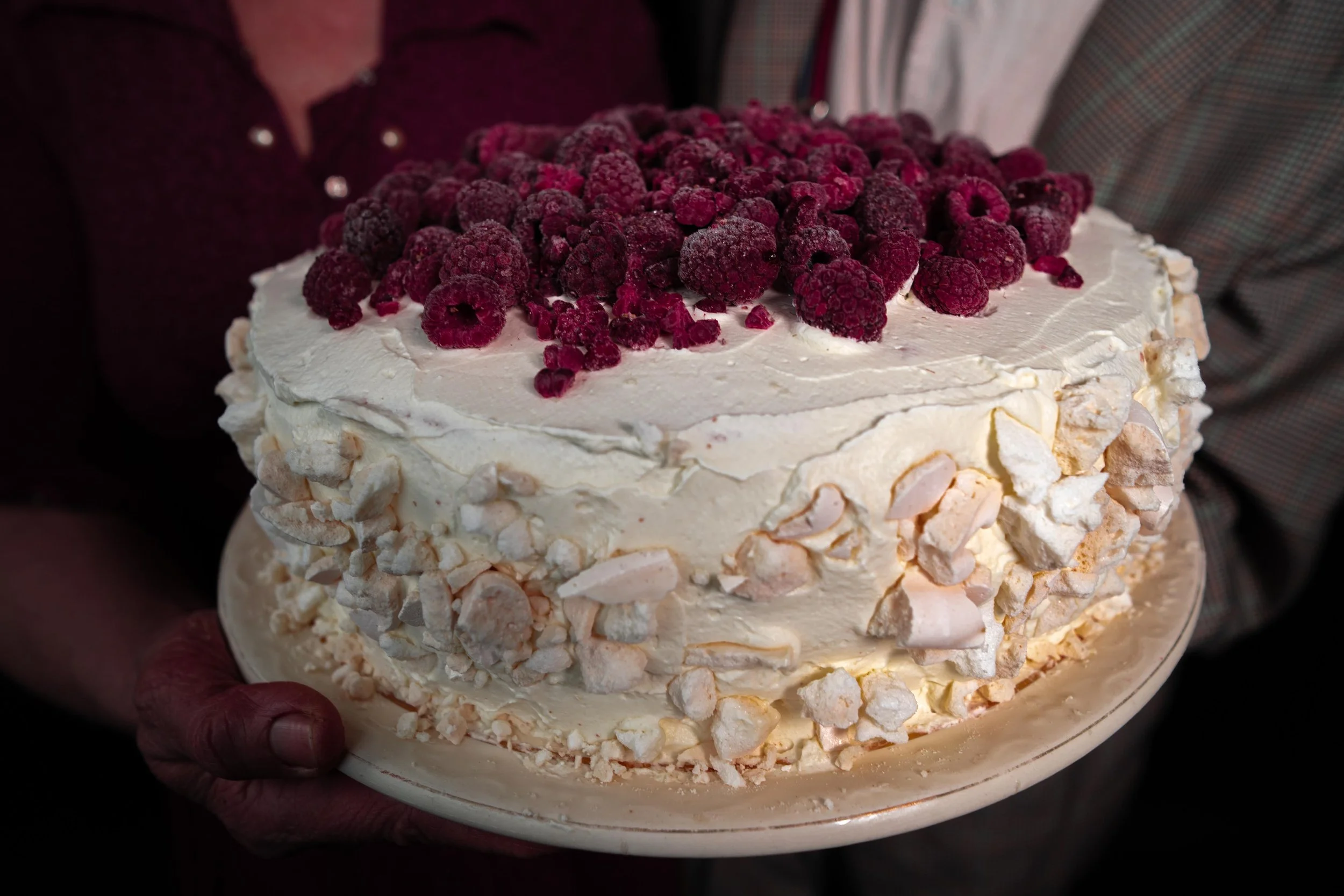 Mit einer fulminanten Torte kommen sie daher: der Mann und die Frau.